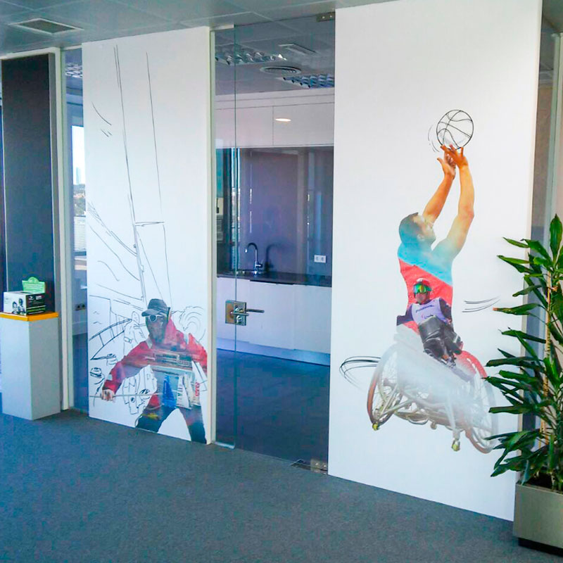 Una oficina necesitaba una gráfica que durase en el tiempo y no se despegara ni con calor, ni con limpiezas frecuentes, ni con el roce diario. En otras palabras: un vinilo que aguantara todo.